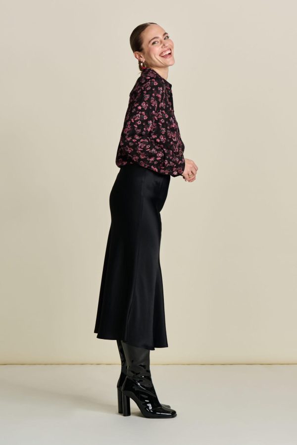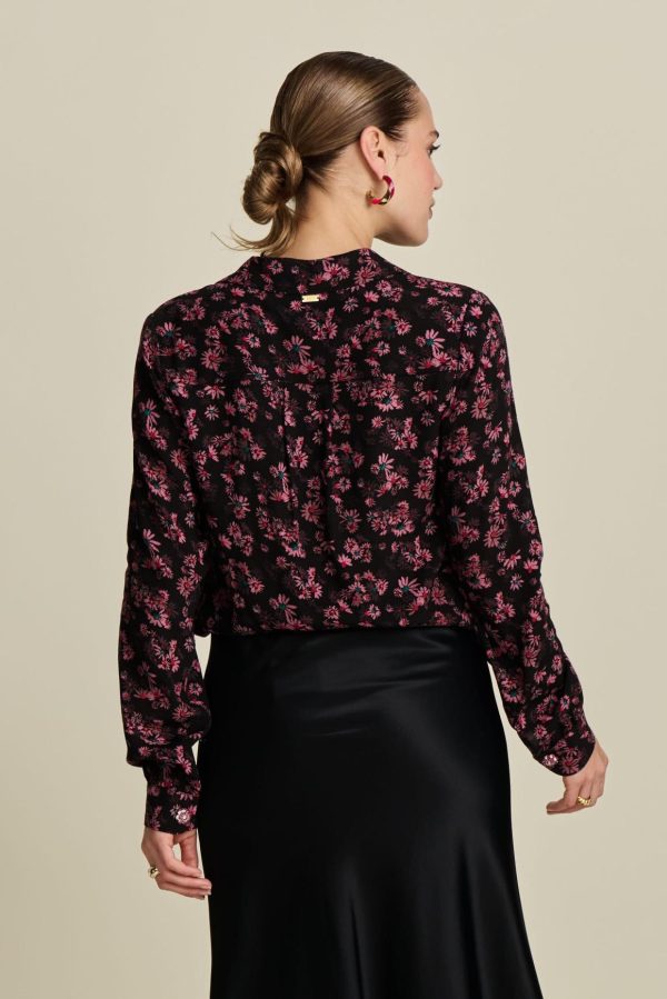 Deze zwarte blouse heeft een kleurrijke bloemen print. Het patroon is gecreëerd met een waterverf techniek. De stof van de blouse bestaat uit een mix van LENZING ™ ECOVERO ™, waardoor dit item ‘more sustainable’ is.