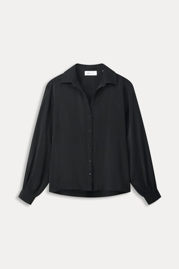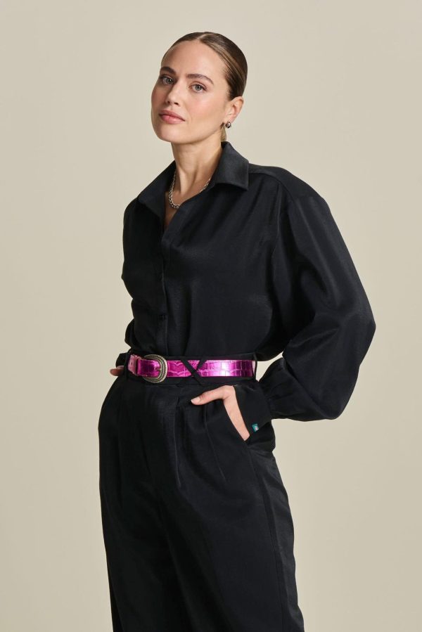 Deze zwarte blouse is de perfecte basic voor elke gelegenheid! De blouse heeft een mooie openvallende kraag. In de stof zit een subtiele glitter verwerkt. De stof van de blouse is gemaakt met LENZING ™ ECOVERO ™, waardoor dit item ‘more sustainable’ is.