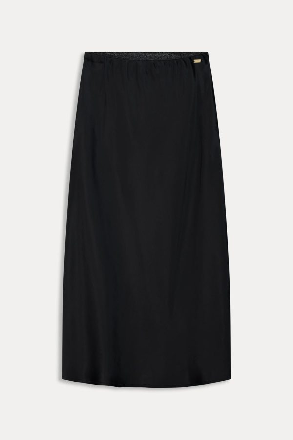 Deze zwarte rok is de perfecte basic voor in je collectie. De rok heeft een elastieken band in de taille zodat deze mooi aansluit. Dankzij de duurzame materialen in de stof is deze rok een ‘more sustainable’ item.
