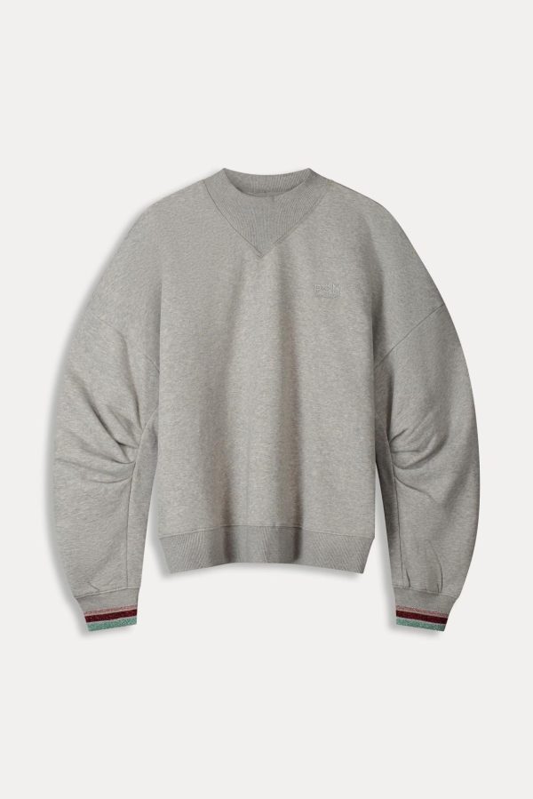 Deze grijze trui straalt comfort uit. De trui heeft plooien in de mouwen waardoor er een pofmouw effect ontstaat. De stof van de sweater is gemaakt van 80% biologische katoen, waardoor dit item ‘more sustainable’ is.