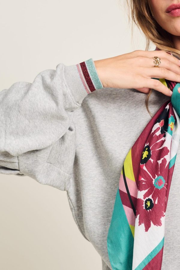 • Lurex gestreept detail op de mouw